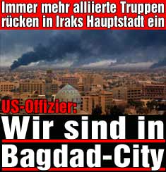 Denn es ging längst nicht um Moral. Die "air campaigns" wie die nächtelangen Luftangriffe genannt wurden, hießen im Experten- Jargon auch "moral bombing". Im Gegenteil. Der Krieg brachte uns Frieden. Da schritt, im Öffentlich-Rechtlichen am Ostersonntag 2003, ein Offi zier der "Desert Rats" mit einem geschulterten, großen Holzkreuz durch einen der "Palast- Gärten" Saddams. Er pflanzte es in den Boden. Um ihn beteten tarnfarben Gewandete, von deren Schultern Maschinenpistolen baumelten.